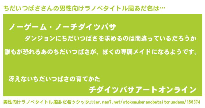| 女子向けラノベタイトル風あだ名 | 『異世界でカフェちだいつばさを開店しました。』 |