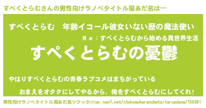 | 胡散臭い通販商品みたいなあだ名 | 『必ず成功する霊験あらたかなお札…その名も「すぺくとらむ」』 |