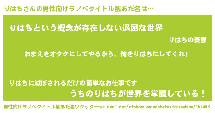 | 女子向けラノベタイトル風あだ名 | 『りはち夫妻のなれそめ』 |