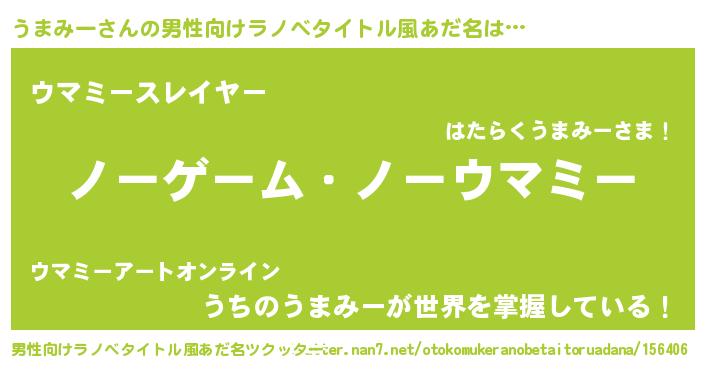 | 女子向けラノベタイトル風あだ名 | 『死神うまみーの再婚』 |