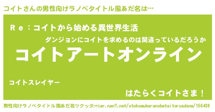 | 女子向けラノベタイトル風あだ名 | 『誰かこのコイトを説明してください! ~契約から始まるウェディング~』 |