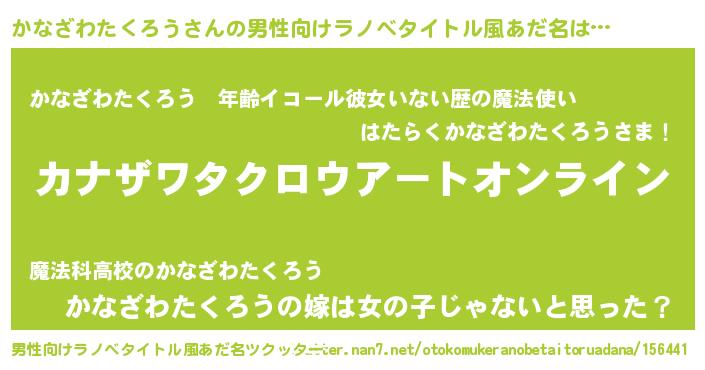 | 胡散臭い通販商品みたいなあだ名 | 『億万長者になれる水晶球…その名も「かなざわたくろう」』 |