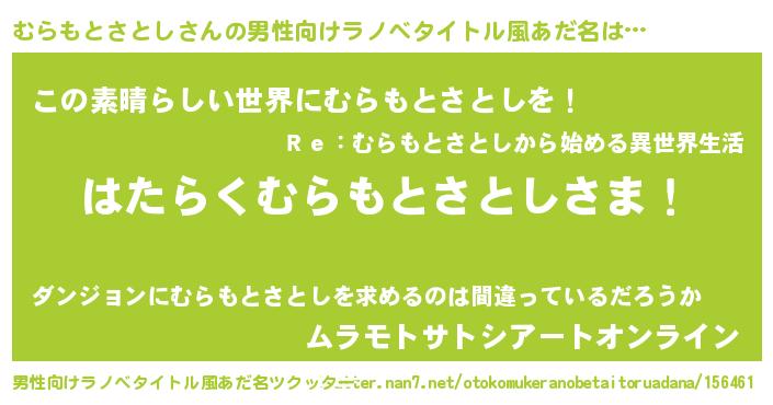| 意味不明あだ名 | 『住所不定無職むらもとさとし(74歳)』 |