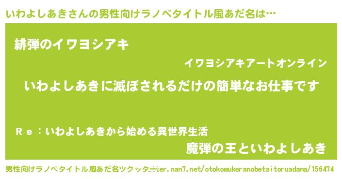 | 意味不明あだ名 | 『住所不定無職いわよしあき(62歳)』 |