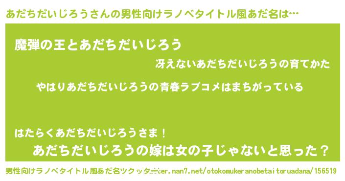 | 女子向けラノベタイトル風あだ名 | 『あだちだいじろうの雑貨屋さん』 |