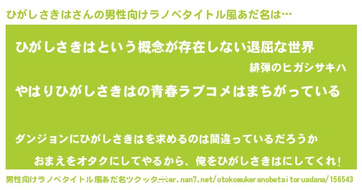 | 女子向けラノベタイトル風あだ名 | 『ひがしさきはの雑貨屋さん』 |