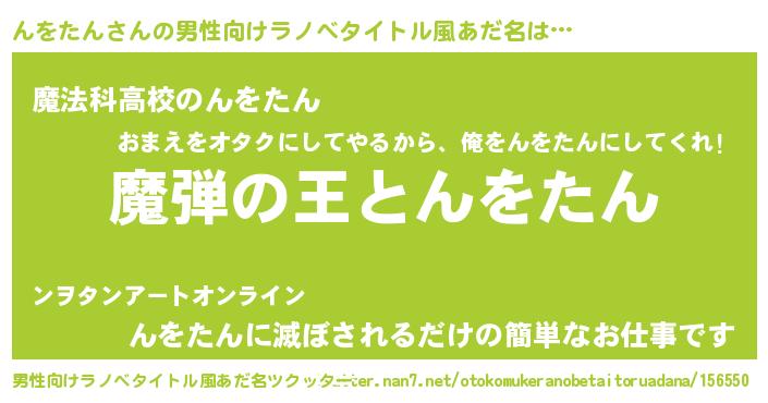 | 女子向けラノベタイトル風あだ名 | 『んをたんが死なない童話 林檎のんをたんの診療簿』 |
