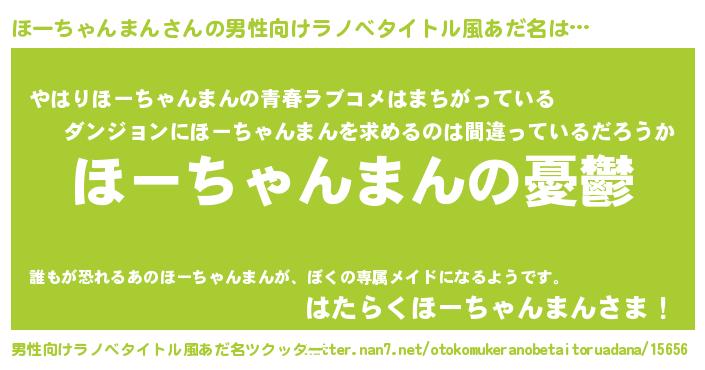| 女子向けラノベタイトル風あだ名 | 『(仮)ほーちゃんまんのやんごとなき事情』 |