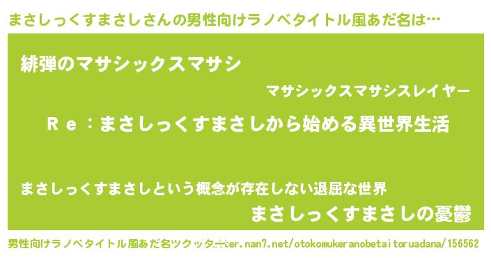 | 女子向けラノベタイトル風あだ名 | 『闇のまさしっくすまさし』 |