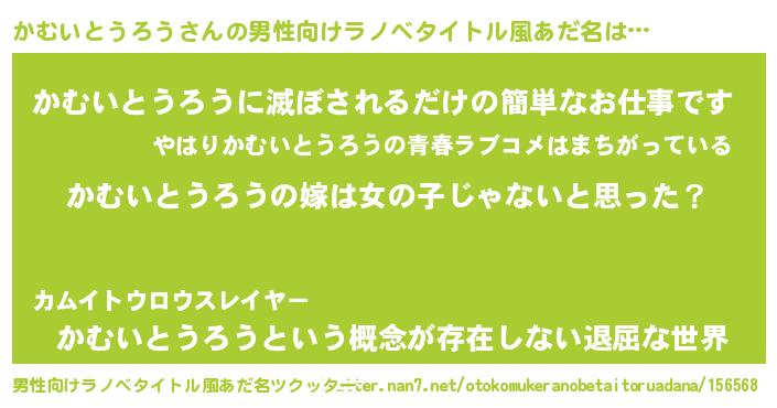 | 女子向けラノベタイトル風あだ名 | 『かむいとうろう様がみてる』 |