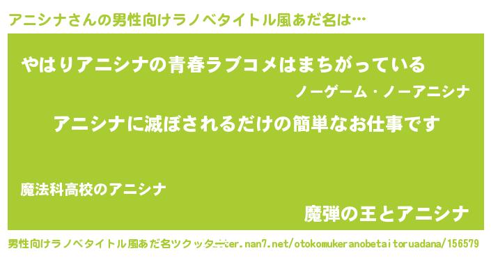 | 意味不明あだ名 | 『アニシナフォーエバー』『自称アニシナ』 |