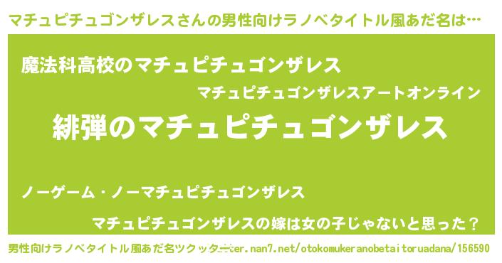 | 女子向けラノベタイトル風あだ名 | 『シンデレラマチュピチュゴンザレス家の靴箱館』 |