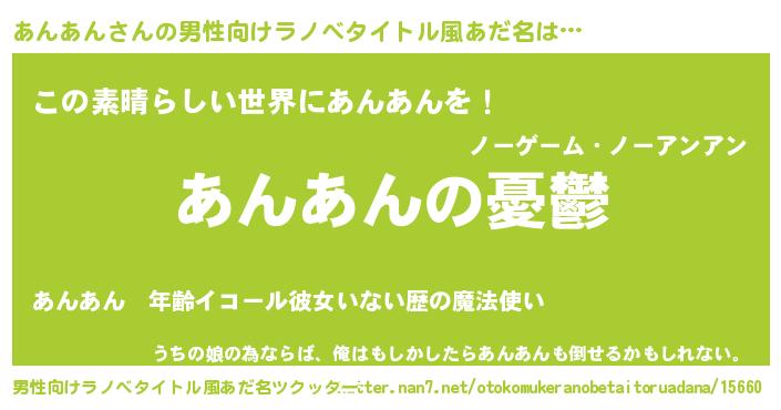 | 胡散臭い通販商品みたいなあだ名 | 『必ず成功する霊験あらたかなお札…その名も「あんあん」』 |