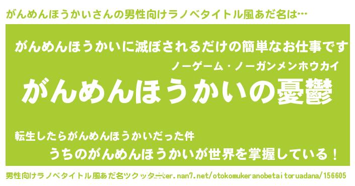 | 胡散臭い通販商品みたいなあだ名 | 『必ず成功するブレスレット…その名も「がんめんほうかい」』 |