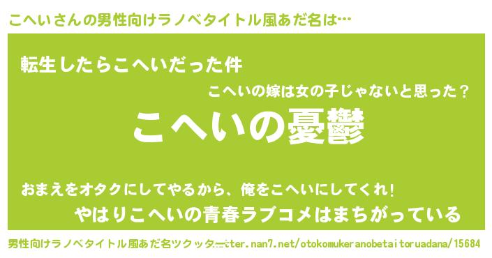 | 女子向けラノベタイトル風あだ名 | 『(仮)こへいのやんごとなき事情』 |