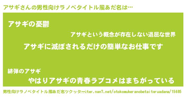 | 胡散臭い通販商品みたいなあだ名 | 『モテモテ間違いなしブレスレット…その名も「アサギ」』 |