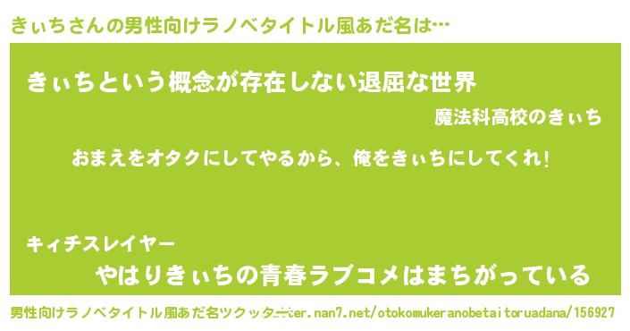 | 女子向けラノベタイトル風あだ名 | 『きぃち恋絵巻』『きぃちの雑貨屋さん』 |