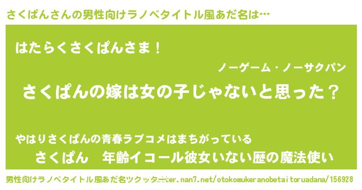 | 胡散臭い通販商品みたいなあだ名 | 『全米が絶賛したサプリメント…その名も「さくぱん」』 |