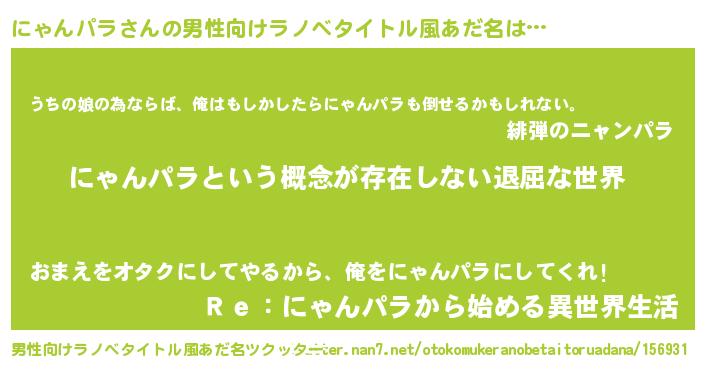| 伝説のあだ名 | 『古より伝わる勇者にゃんパラ』 |