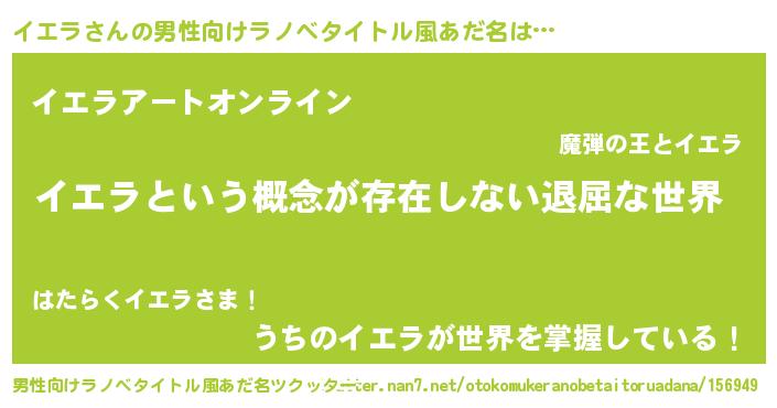 | 女子向けラノベタイトル風あだ名 | 『異世界で失敗しない100のイエラ』 |