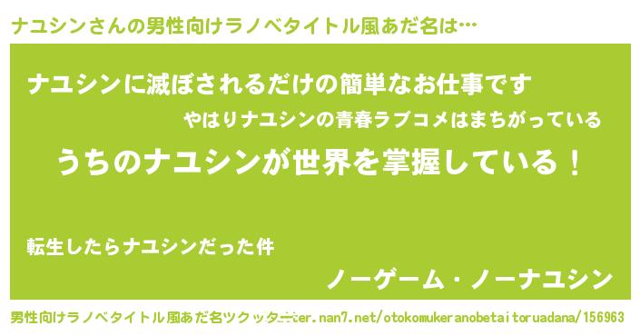 | 女子向けラノベタイトル風あだ名 | 『男装ナユシンの憂鬱な任務』 |