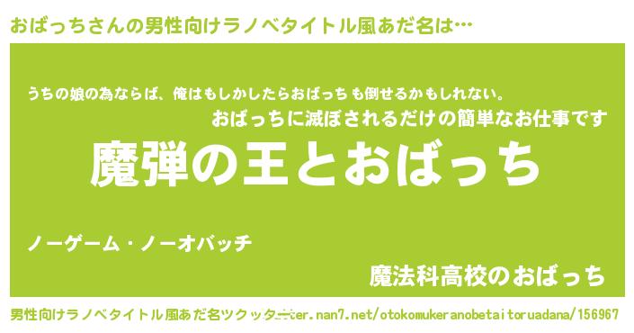 | 意味不明あだ名 | 『住所不定無職おばっち(77歳)』 |