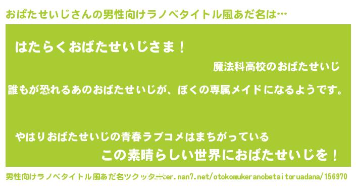 | ヒーロー風カッコイイあだ名 | 『ネオオバタセイジ』『仮面オバダー』 |