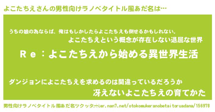 | 女子向けラノベタイトル風あだ名 | 『闇のよこたちえ』『よこたちえの婚約者』 |