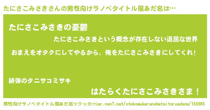 | 胡散臭い通販商品みたいなあだ名 | 『100人中100人が認めたマグネット磁石…その名も「たにさこみさき」』 |