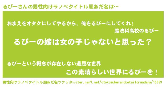| 女子向けラノベタイトル風あだ名 | 『るびー様がみてる』『るびー恋絵巻』 |