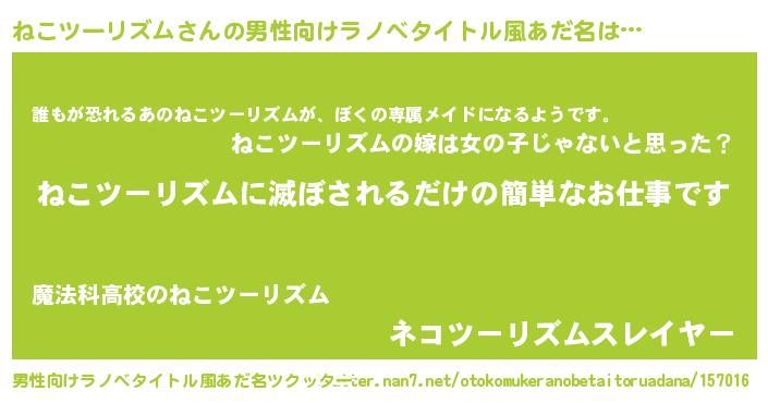 | ヘコむあだ名 | 『ねこツーリズム(遠い目)』『ねこっ子』 |