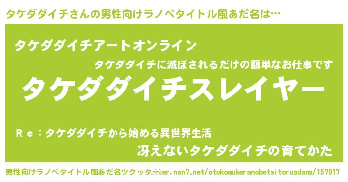| 胡散臭い通販商品みたいなあだ名 | 『必ず成功する霊験あらたかなお札…その名も「タケダダイチ」』 |