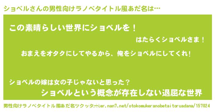 | 女子向けラノベタイトル風あだ名 | 『ショベル夫妻のなれそめ』 |