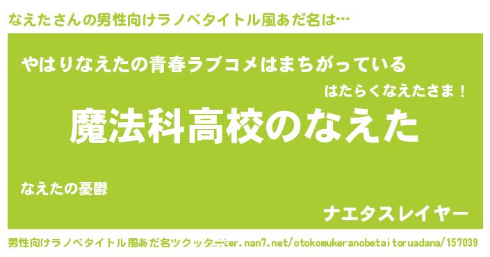 なえたさんの男性向けラノベタイトル風あだ名をツクッター!