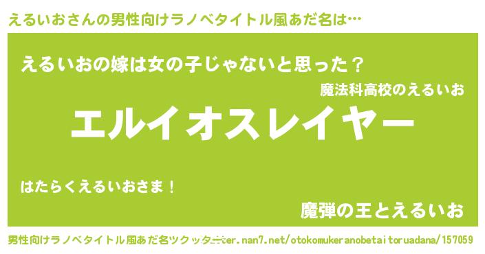 | 意味不明あだ名 | 『めかぶ科えるいお属』『自称えるいお』 |