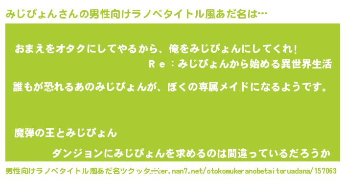 | 意味不明あだ名 | 『永久保存みじぴょん』『自称みじぴょん』 |
