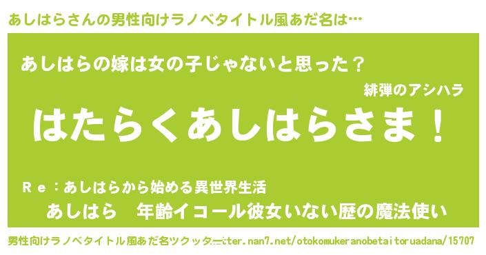 | 意味不明あだ名 | 『とにかく怪しいあしはら』 |
