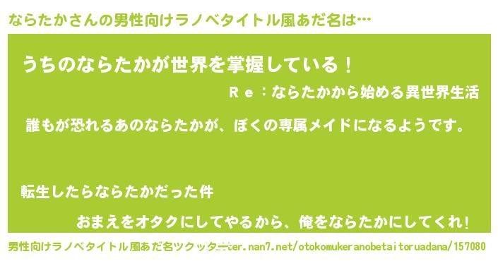 | 意味不明あだ名 | 『永久保存ならたか』『自称ならたか』 |