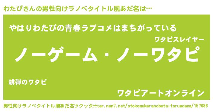| ヒーロー風カッコイイあだ名 | 『天空の使者わたぴ』『スーパーワタピ』 |