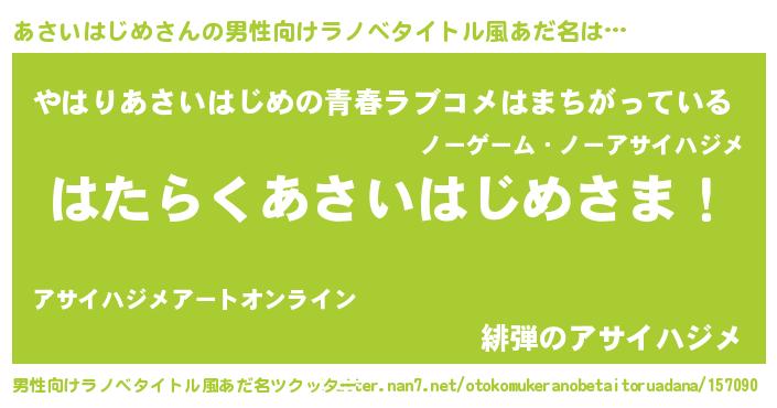 | 欧米人風あだ名 | 『アンジェラ・あさいはじめ』 |
