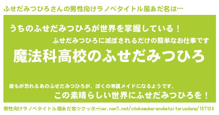 | 女子向けラノベタイトル風あだ名 | 『ふせだみつひろなんてお断りですっ。』 |