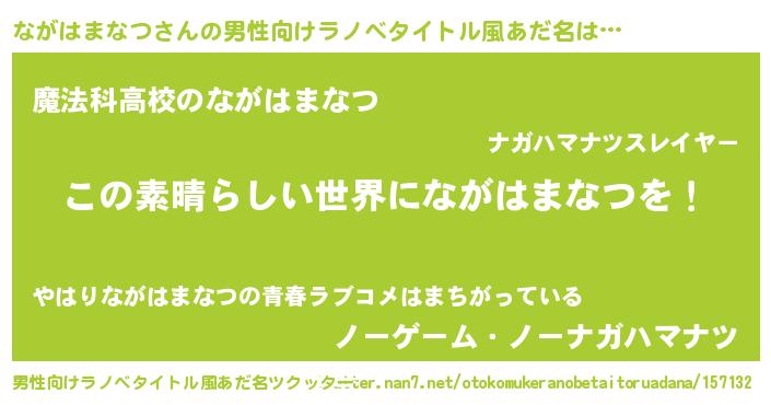 | 女子向けラノベタイトル風あだ名 | 『悪役ながはまなつに転生したようですが、知った事ではありません』 |