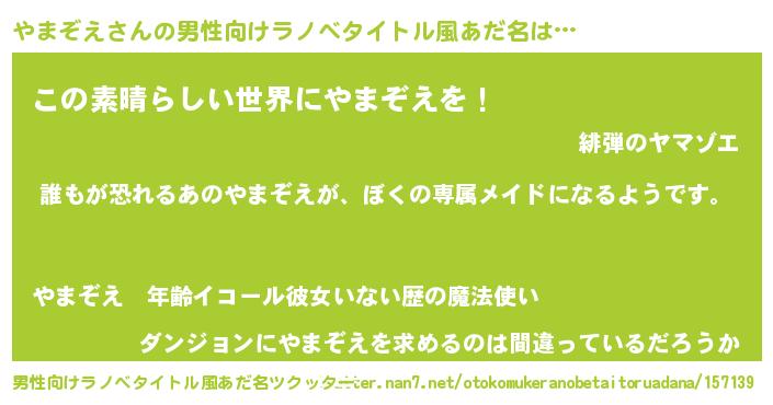 | 胡散臭い通販商品みたいなあだ名 | 『前代未聞の水素水…その名も「やまぞえ」』 |