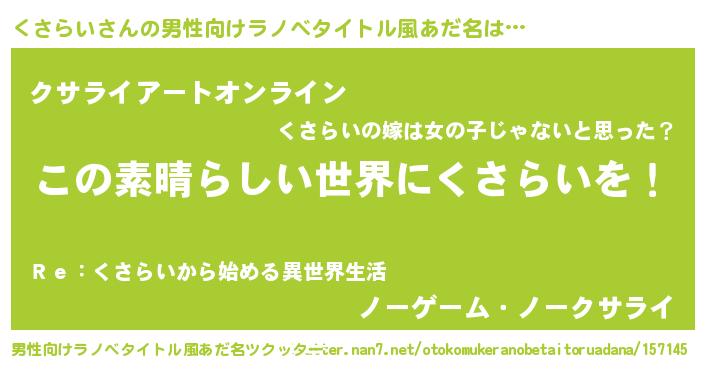 | 女子向けラノベタイトル風あだ名 | 『乙女ゲームの破滅フラグしかない悪役くさらいに転生してしまった…』 |
