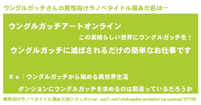 | 胡散臭い通販商品みたいなあだ名 | 『億万長者になれる水晶球…その名も「ウングルガッチ」』 |