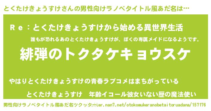 | 意味不明あだ名 | 『自称とくたけきょうすけ』 |