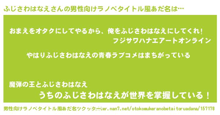 女子向けラノベタイトル風あだ名 | 『ふじさわはなえ伯爵の花嫁』 |