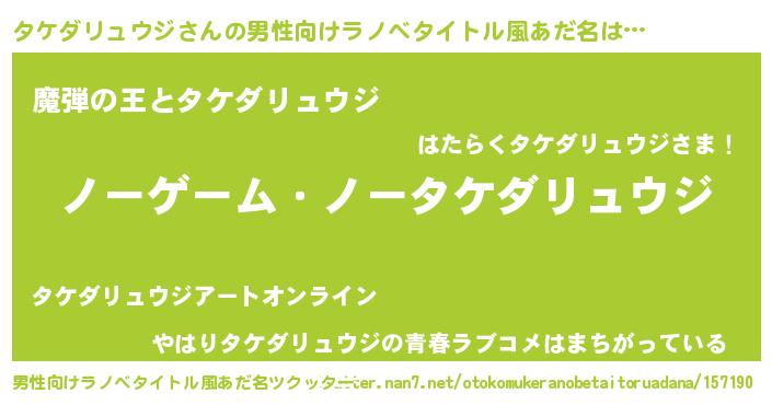 | 女子向けラノベタイトル風あだ名 | 『死神タケダリュウジの再婚』 |