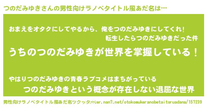 | 女子向けラノベタイトル風あだ名 | 『男装つのだみゆきの憂鬱な任務』 |