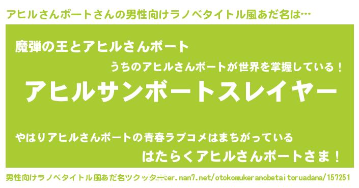 | ヒーロー風カッコイイあだ名 | 『仮面アヒダー』『ネオアヒルサンボート』 |